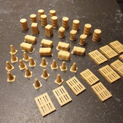 Scalextric tillbehör rekvisita soptunnor , koner , halmbalar , lastpallar