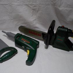 Bosch Leksaksverktyg motorsåg borrmaskin med ljudeffekter + handsåg.