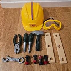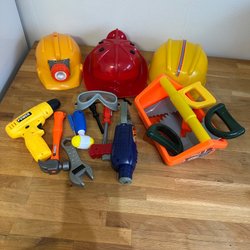 Leksaksverktyg och hjälmar