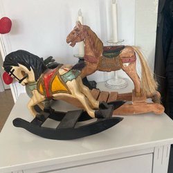Två dekorativa gunghästar i trä
