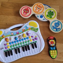 Med små trumpeter, pianon, gitarrer och flöjtar kan barnen skapa en helt egen orkester. Titta närmare på annonserna med leksaksinstrument här på Tradera och få möjligheten att köpa dem till ett bättre pris än när de säljs nya i butik – vissa musikinstrument är nya, medan andra är begagnade. Välkommen!