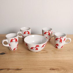 Fågel Muggar | Röda Och Vita | 4 Stycken