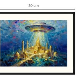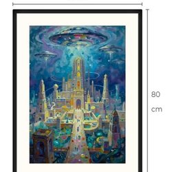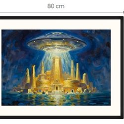 Atlantis och UFO art print med passepartout och ram 60 cm x 80 cm