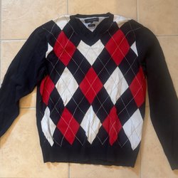 Tommy Hilfiger svart/röd tröja, storlek M/L, 100%Bomull
