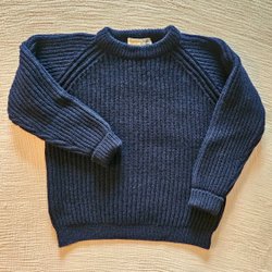 Vintage 1980s Dark Blue Chunky Fishermans Knit Sweater, 100% Pure Wool