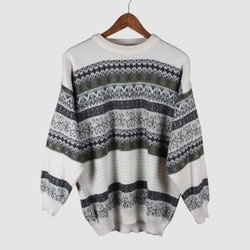 VINTAGE - MÖNSTERSTICKAD TRÖJA - VIT/GRÅ/GRÖN - XL - AKRYL