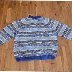 Stickad blå och vit ulltröja, ca str S