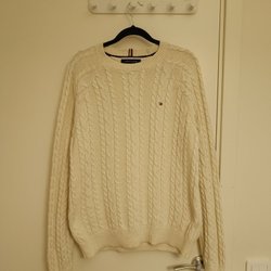 Tommy Hilfiger krämvit kabelstickad tröja, storlek M