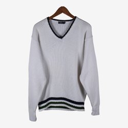 Lyle & Scott vit v-ringad tröja, storlek L