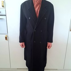 En mycket stilren mörkblå ullkappa från Lloyd's (Business Class) i storlek 54-56