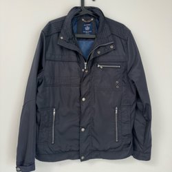 Zegna Sport blå jacka, strl L herr nylon jacka tunt foder vindjacka
