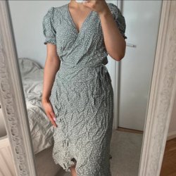 Gråblå klänning med vita prickar, storlek 42