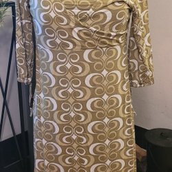 Olivgrön klänning med silvrig lurextråd. L