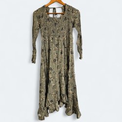 Oanvänd beige/grön midiklänning, från Zara storlek L