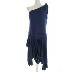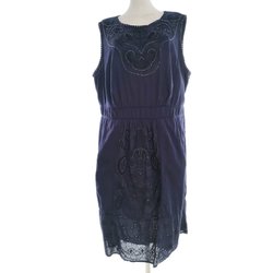 ROCHA. JOHN ROCHA Dam Enkel Klänning 50 Marinblå Bomull 100% Ärmlös Broderi Midi