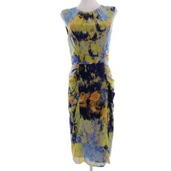WHISTLES Dam Pennklänning 38 Gul Siden Ärmlös Midi Rund urringning
