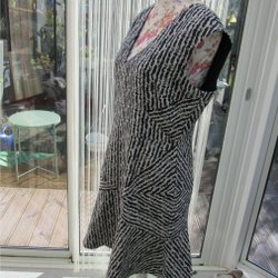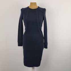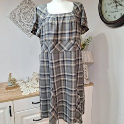 Steilmann elegant rutig klänning i grått och marinblått stl 48 ull & viskos