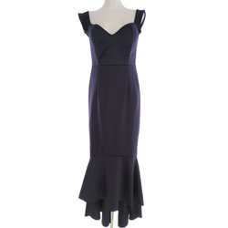 VINTAGE Dam Sjöjungfruklänning L Marinblå Ärmlös Lång Off shoulder