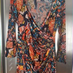flerfärgad klänning, storlek 44/46,tungt fall