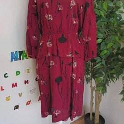 Vinröd klänning med svart mönster, storlek 44