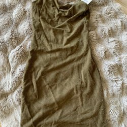 Olivgrön klänning i linne, strl. One size (M/L)