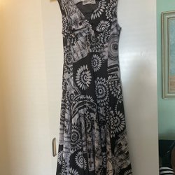 flerfärgad klänning, storlek 44/46,tungt fall