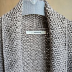 XSARA Lång Kofta Kappa Med Band Ränder Brun M Lång ärm Tjock stickning