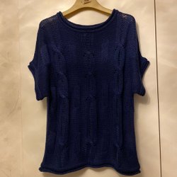 TEXT... Tröja Ränder Virkning Blå L Lång ärm Rund urringning Tjock stickning