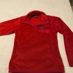Patagonia röd fleecejacka, storlek XL, knappt använd.