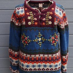”INDISKA” MÖNSTERSTICKAD SHETLANDULLSTRÖJA BOHO STORL.S/M