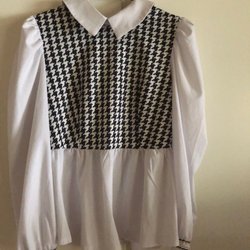 Hampton Republic vit/svart blus, storlek 38