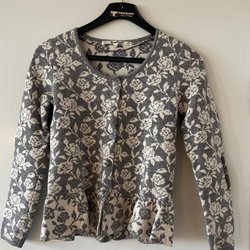 Rosemunde grå/vit kofta, storlek xs-s