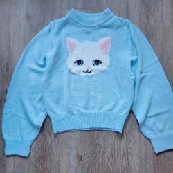 H&M light blue cat tröja sweater