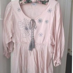vacker blus/tunika, med brodyr, från firma Repeat st. 38-40 bomull fint skick