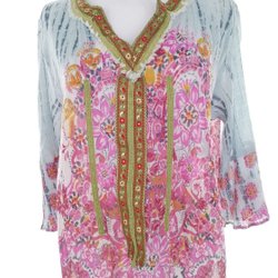 Jättevacker tunika i bomull, ledig passform, blå nyanser, stl. L