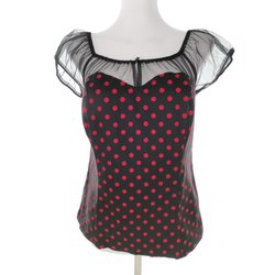 JOE BROWNS Dam Blus 38 Svart Bomull Kort ärm Prickar Fyrkantig urringning