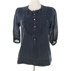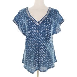 EAST ARTISAN MED ANOKHI Dam Blus 42 Blå Bomull 100% Kort ärm V-ringning
