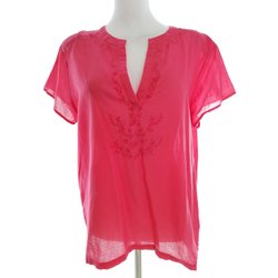 CARLA F Dam Blus L Rosa Bomull 100% Kort ärm Broderi Delad rund hals