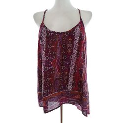 REDOUTE FRANCE Dam Blus 40 Lila Bomull 100% Ärmlös Ränder Paisley U-ringning