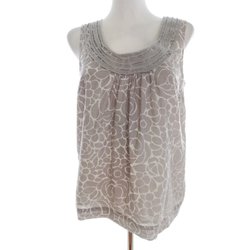 LISBETH DAHL Dam Blus M Krämfärgad Bomull 100% Ärmlös Spetsbroderi Fyrkantig