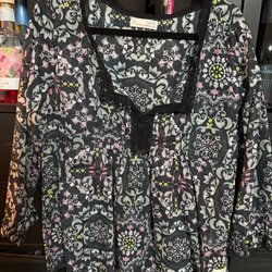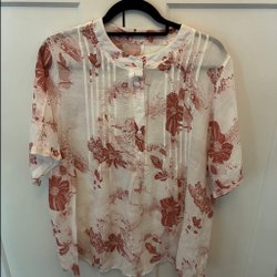 H&M brun grå blommig blus, storlek S