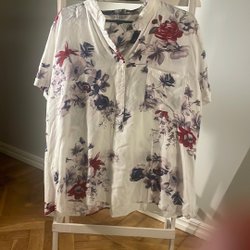 Vit kortärmad blus med mönster stl. XL 48/50