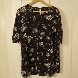 Generous by Lindex svart med gråa rosor blus, storlek 46/48