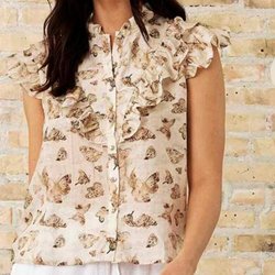 Together blus XL (42) – puderrosa med fjärilar och volangärm i viskos