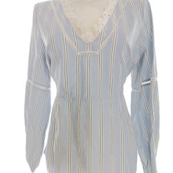 Culture beige och marinblå blus, storlek XS