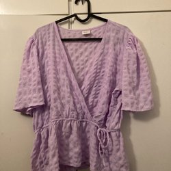 Lila blus/topp stl M med fjärilsärmar och knyt på ena sidan