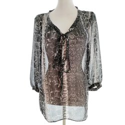 ZAVANNA Blus 40 Svart 3/4 ärm Ränder Leopardmönster Nyckelhålshals