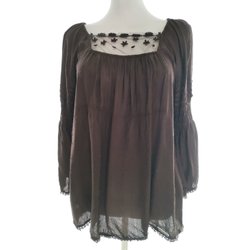 SUZANNE NILSSON Blus S Brun Viskos 100% 3/4 ärm Spetsbroderi Fyrkantig