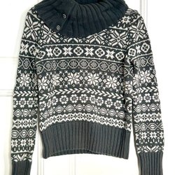 100% Ulltröja, Norskt mönster. Svart/Mörkgrå. Stl S-M