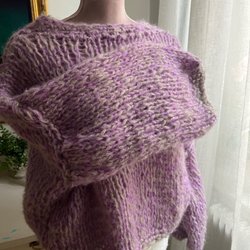Handstickad ylletröja med krage I melerat rosa garn, M